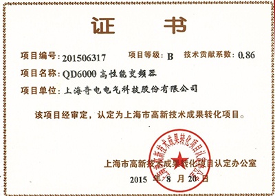 上海奇電電氣科技股份有限公司是一家以創新、革新為理念的科技創新型企業,公司堅持創新是企業發展的根本動力,并以自主創新、持續創新作為公司的發展道路。目前公司自主研發的機器有:QD200通用型變頻器、QD6000高新能變頻器、QD100單相變頻器、QD6600工程型變頻器、QDS低壓軟起動器等產品。其中QD6000高新能變頻器被上海市認定為高新技術成果轉化項目、奇電高新能無傳感器矢量控制變頻軟件V1.0被上海市認定為自主開發的軟件產品等。