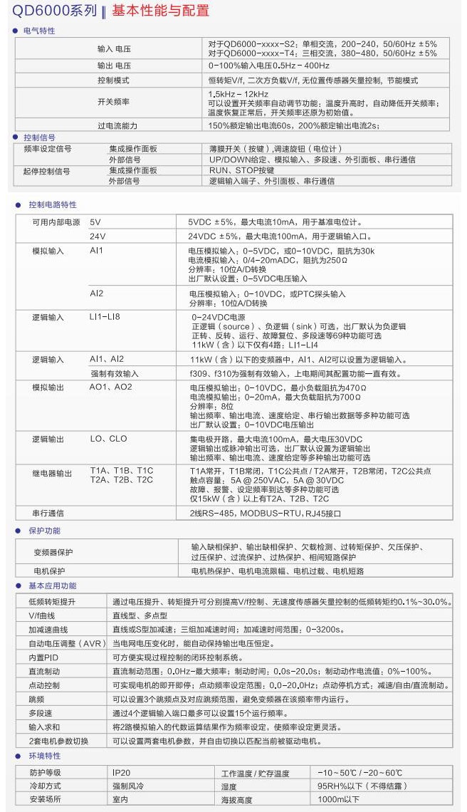 QD6000系列是奇電科技開發(fā)的新一代高性能變頻器,以符合廣大用戶的應(yīng)用需求為設(shè)計(jì)理念,具有豐富的功能,卓越穩(wěn)定的性能,簡(jiǎn)潔新穎的結(jié)構(gòu)。QD6000系列變頻器采用了先進(jìn)的無(wú)速度傳感器矢量控制技術(shù)、先進(jìn)的電機(jī)參數(shù)辨識(shí)、在線估計(jì)技術(shù)及先進(jìn)的磁鏈估計(jì)技術(shù),無(wú)論是在調(diào)速范圍還是在動(dòng)態(tài)響應(yīng)、控制精度及低頻轉(zhuǎn)矩上均得到了很大的提高。